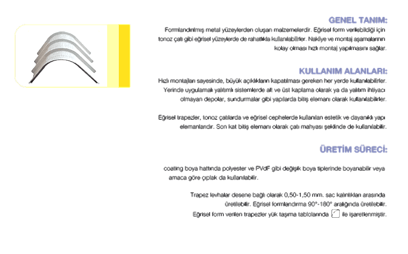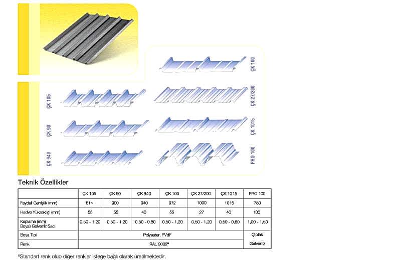 Yalıtım ihtiyacı olmayan yapılar ve yerinde uygulama yalıtımlı sistem için üretilmiş çatı trapezleridir.