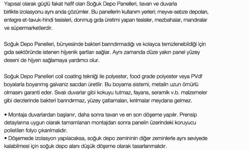 Soğuk Depo Paneli